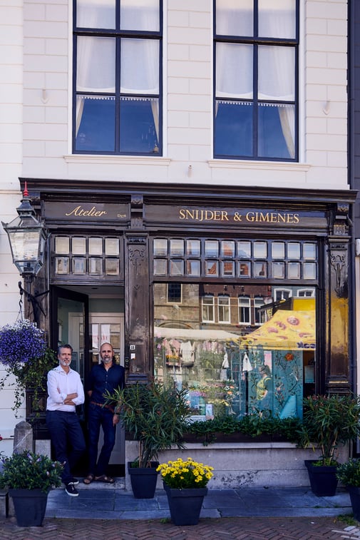 jarenlang als art director. Inmiddels runnen ze nu zo’n 14 jaar samen Snijder&CO, waarmee ze het ambacht van handgeschilderd behang nieuw leven hebben ingeblazen. De hoge witte ruimte waar je