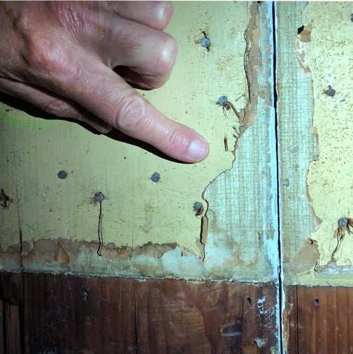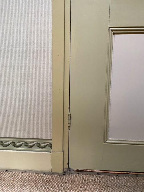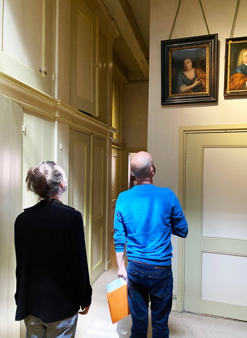 Door een restauratiedeskundige zijn diverse kleurtrappen gemaakt van de oorspronkelijke verflagen op de muren in deze ruimte. Op basis van deze onderzoeken kon het originele kleurpalet van het de kamer worden vastgesteld. De kleuren komen overeen met dat van het kleine fragment behang dat bewaard is gebleven,. Dankzij een advertentie op de achterzijde dat het behang weten we ook dat het behang werd aangebracht begin 20ste eeuw.