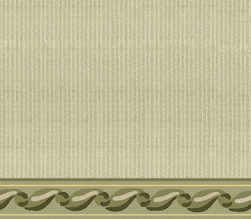 Hoewel het exacte patroon van de border in deze kamer onbekend is, is gekozen voor een typische border uit die tijd, passend bij de kleuren en stijl van het behang.