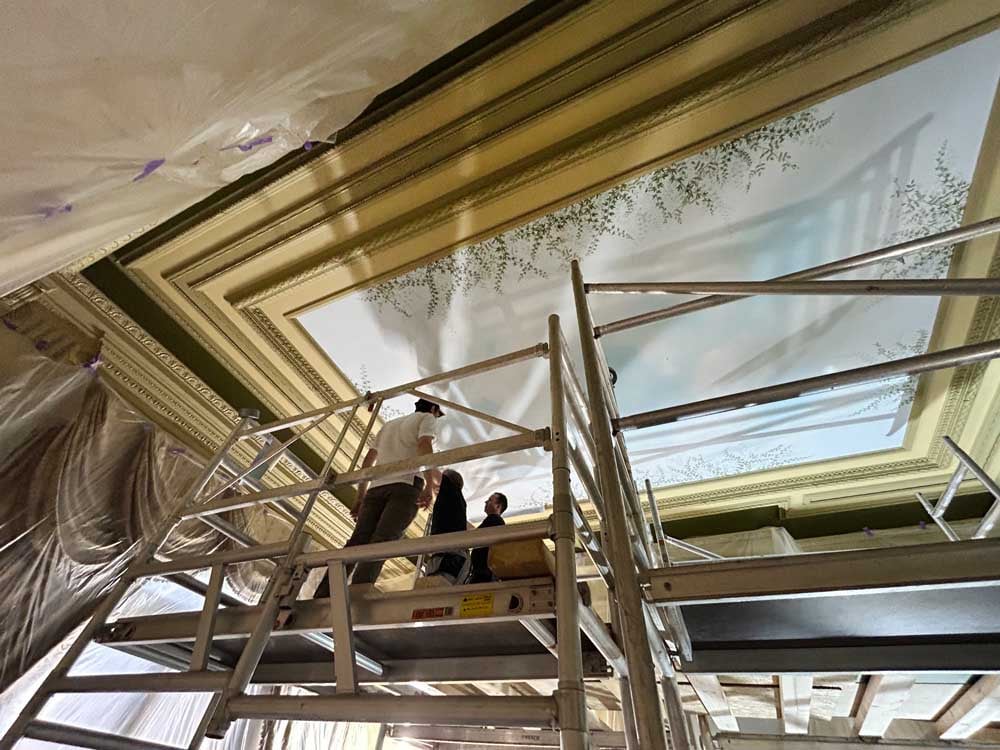 andere met het terugbrengen van de plafondschildering in de Tuinkamer, geschilderd