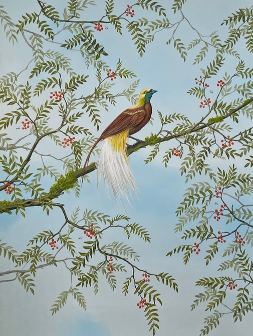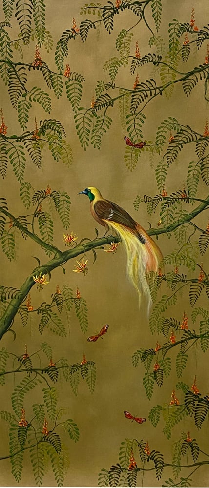 Greater Bird of Paradise, 70 x 90 cm, Emulsion paint and pigments on paper. Purchase information >>