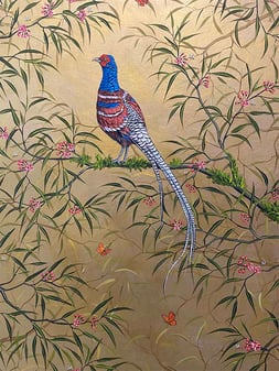 Chinoiserie tweeluik met fazanten 75 x 195 cm per paneel.(Sold)