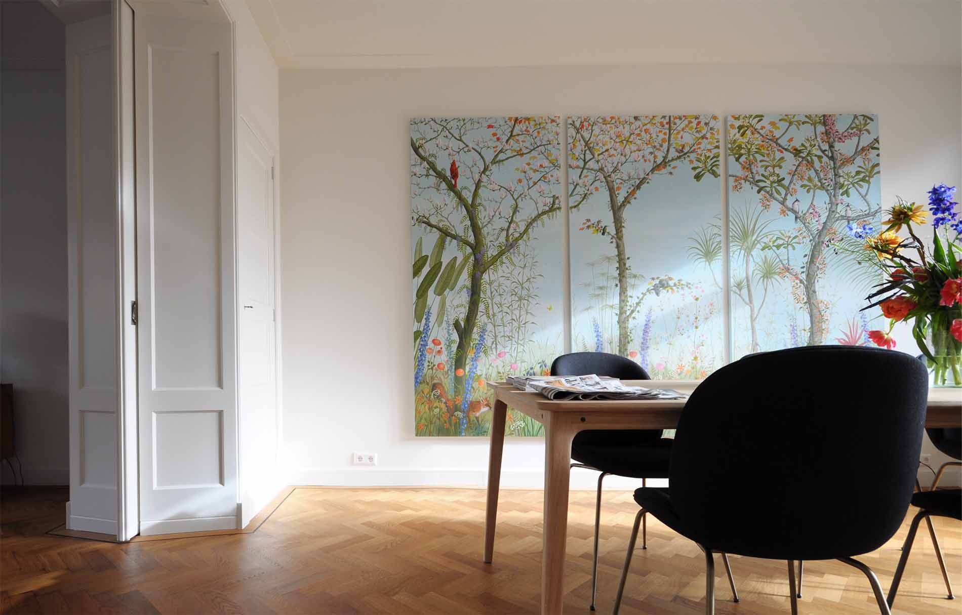 Hier vind je een kleine selectie van foto’s en de maakvideo’s van de opdrachten die wij in de loop der jaren hebben uitgevoerd. Je krijgt een inkijk in zowel onze museale projecten – waarin historisch vakmanschap en restauratie centraal staan – als in onze particuliere opdrachten, waarbij unieke handgeschilderde behangschilderingen op maat worden vervaardigd. Elk project vertelt zijn eigen verhaal en toont onze passie voor ambacht, detail en esthetiek.